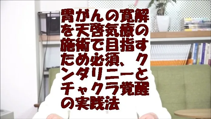 胃がんの寛解を天啓気療の施術で目指すため必須、クンダリニーとチャクラ覚醒の実践法 胃がんに対して納得のいく療法が見つからず、不安や焦りを感じていませんか?従来の治療に頼るだけでは得られない「完全寛解」を目指せる方法があるとしたら、試してみたいと思うことでしょう。天啓気功…