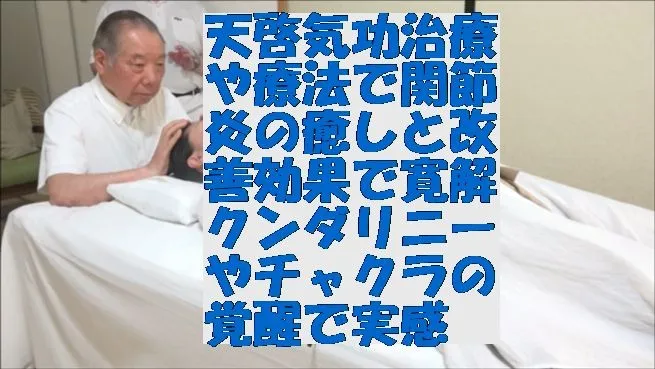 天啓気功治療や療法で関節炎の癒しと改善効果で寛解 クンダリニーやチャクラの覚醒で実感 天啓気功治療や療法で関節炎の癒しと改善効果で寛解クンダリニーやチャクラの覚醒で実感ウェブhttps://tenkeikiryoin.com/口コミhttps://tenkeikiryoin.com/reviews/動画集https://www.youtube.com/chann…