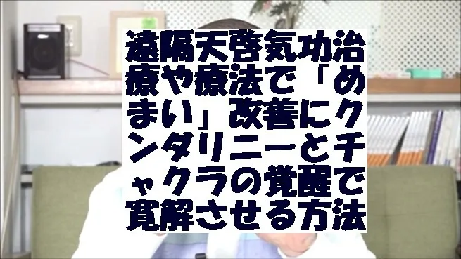 遠隔天啓気功治療や療法で「めまい」改善にクンダリニーとチャクラの覚醒で寛解させる方法 遠隔天啓気功治療や療法で「めまい」改善にクンダリニーとチャクラの覚醒で寛解させる方法ウェブhttps://tenkeikiryoin.com/口コミを書くhttps://tenkeikiryoin.com/reviews/動画集https://www.youtube.c…