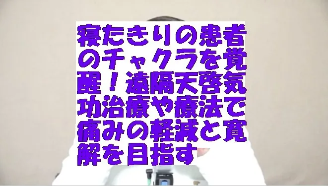寝たきりの患者のチャクラを覚醒!遠隔天啓気功治療や療法で痛みの軽減と寛解を目指す 寝たきり患者にとって、心身の痛みと向き合うことは日々の大きな課題です。本記事では、遠隔気功(天啓気功治療や療法)を通じてチャクラを活性化し、痛みの軽減と寛解を目指す方法について紹介します。天…