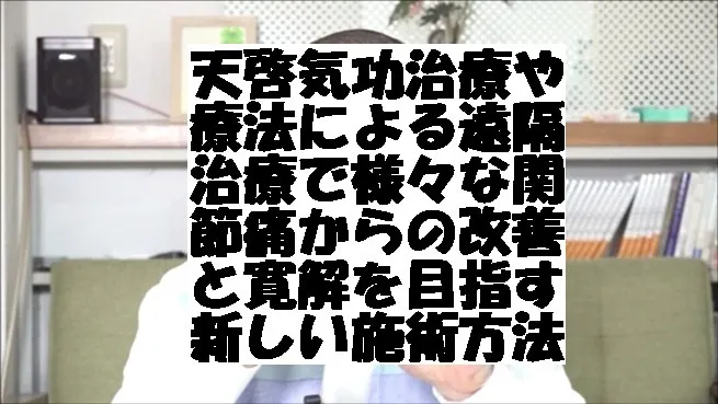 天啓気功治療や療法による遠隔治療で様々な関節痛からの改善と寛解を目指す新しい施術方法 気功(天啓気功治療や療法)による遠隔治療がもたらす関節痛からの寛解方法を探求しませんか?天啓気功治療院では、天啓気功治療や療法で活性化するクンダリニーとチャクラの覚醒を通じて、心身のバランス…