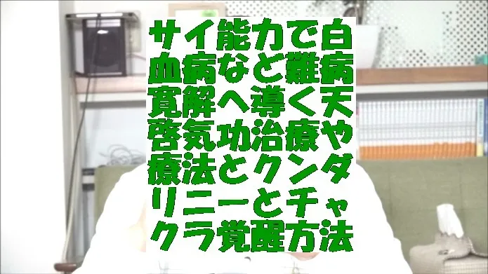 サイ能力で白血病など難病寛解へ導く天啓気功治療や療法とクンダリニーとチャクラ覚醒方法 サイ能力で白血病など難病寛解へ導く天啓気功治療や療法とクンダリニーとチャクラ覚醒方法ウェブhttps://tenkeikiryoin.com/口コミhttps://tenkeikiryoin.com/reviews/動画集https://www.youtube.com/cha…