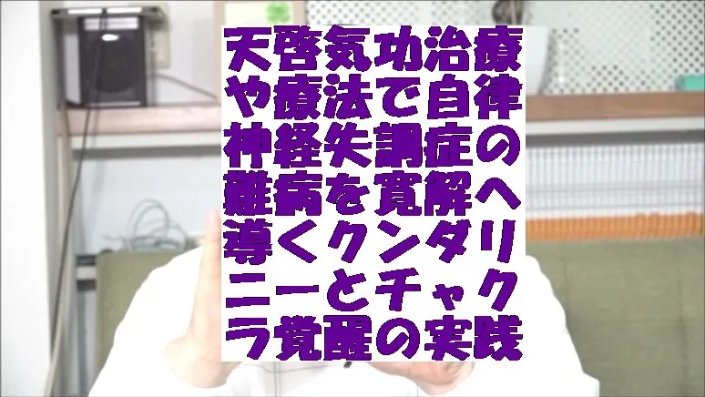 天啓気功治療や療法で自律神経失調症の難病を寛解へ導くクンダリニーとチャクラ覚醒の実践 自律神経失調症や難病がなかなか改善しないと感じていませんか?現代医療だけでは効果を実感しにくい不調や症状に対し、気功治療(天啓気功治療や療法)や天啓気功治療や療法で活性化するクンダリニーの覚…