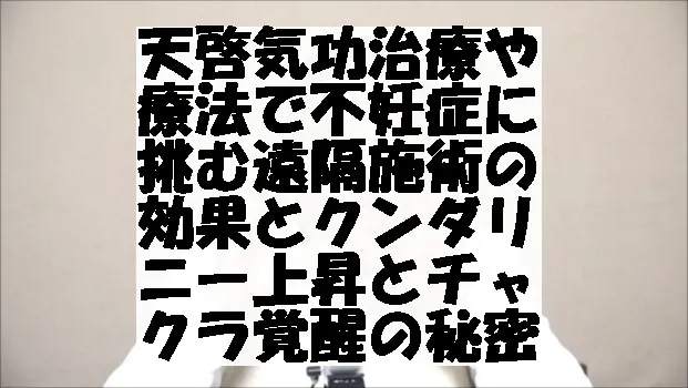 天啓気功治療や療法で不妊症に挑む 遠隔施術の効果とクンダリニー上昇とチャクラ覚醒の秘密 気功治療(天啓気功治療や療法)は、不妊症治療に新たな希望をもたらす方法として注目を集めています。本記事では、遠隔施術(天啓気功治療や療法)による気功治療(天啓気功治療や療法)の効果や、天啓気功治…