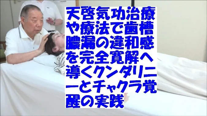天啓気功治療や療法で歯槽膿漏の違和感を完全寛解へ導くクンダリニーとチャクラ覚醒の実践 東京都大田区内、平和島駅から徒歩10分・大森町駅から徒歩5分の所にある天啓気療院(東京店)では、本物の気功師、気功の達人と豪語する者、気功治療や気功療法などを実施する気功術師や気功師、様々な治療…