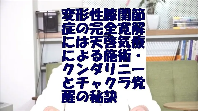 変形性膝関節症の完全寛解には天啓気療による施術・クンダリニーとチャクラ覚醒の秘訣 変形性膝関節症の痛みに悩み、従来の治療ではなかなか改善を実感できない現状に戸惑いを感じていませんか?慢性的な苦しみが日常生活や心の安定に陰を落とし、新たな解決策を探す過程で、身体だけでなく…